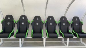 - 2 lugares com assentos plásticos padrão estádio e mesa