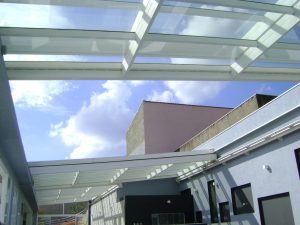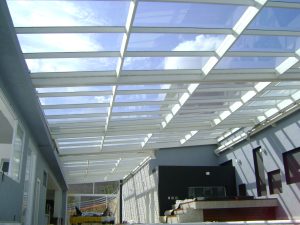 • Transparência e luminosidade com o uso de policarbonato alveolar, compacto ou vidro laminado, mesmo quando fechada.